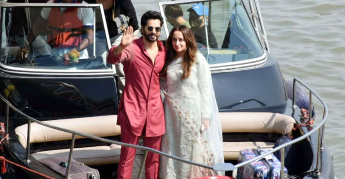 নৌকায় চড়ে মুম্বাই ফিরলেন নবদম্পতি বরুণ-নাতাশা