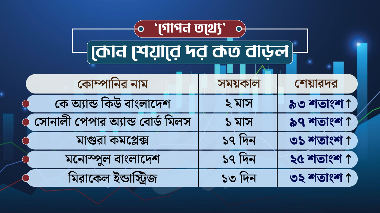 গোপন তথ্যে যেসব শেয়ারের দাম বাড়ল