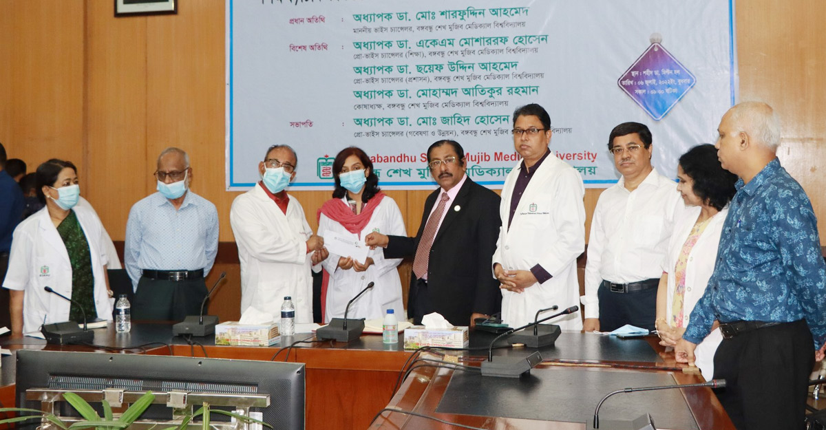 এসময় অধ্যাপক ডা. মো. শারফুদ্দিন আহমেদ বঙ্গবন্ধু শেখ মুজিব মেডিকেল বিশ্ববিদ্যালয়ের ৭৮ জন গবেষক, শিক্ষক ও চিকিৎসকের মাঝে গবেষণা অনুদান তুলে দেন।