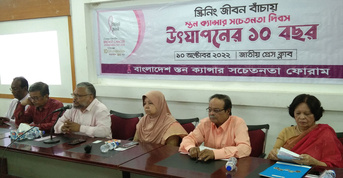 সোমবার (১০ অক্টোবর) বেলা ১১টায় জাতীয় প্রেস ক্লাবের তফাজ্জল হোসেন মানিক মিয়া মিলনায়তনে ক্যানসারবিরোধী ও নারী সংগঠনসহ ৩৫টি সংগঠনের মোর্চা ‘বাংলাদেশ স্তন ক্যানসার সচেতনতা ফোরাম’ আয়োজিত স্তন ক্যানসার সচেতনতা দিবস উদযাপনের ১০ বছর শীর্ষক আলোচনা সভায় তিনি এসব কথা বলেন।