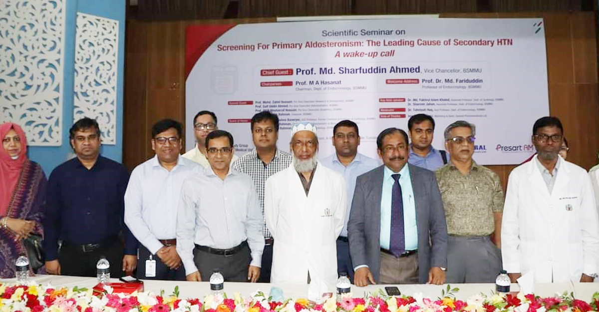 মঙ্গলবার (১১ অক্টোবর) বঙ্গবন্ধু শেখ মুজিব মেডিকেল বিশ্ববিদ্যালয়ে (বিএসএমএমইউ) উচ্চ রক্তচাপ ও হাইপার এল্ডোস্টেরনিজম বিষয়ক সচেতনতা মূলক ‘স্ক্রিনিং ফর প্রাইমারি অ্যালডোসটেরোনিসম : দ্যা লিডিং কস অব সেকেন্ডারি এইচটিএন’ শীর্ষক বৈজ্ঞানিক সেমিনারে তারা এসব কথা বলেন।