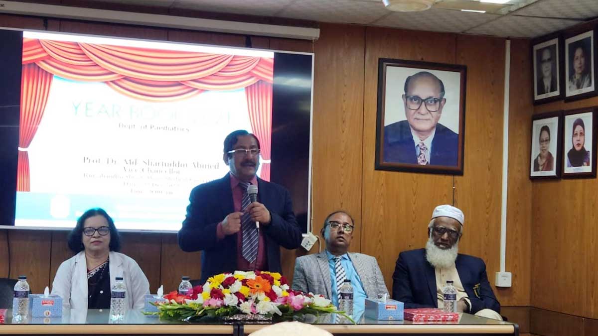 অনুষ্ঠানে সভাপতিত্ব করেন শিশু অনুষদের ডিন ও শিশু বিভাগের চেয়ারম্যান অধ্যাপক ডা. সুরাইয়া বেগম। এসময় অন্যান্যদের মধ্যে বক্তব্য রাখেন বিশ্ববিদ্যালয়ের উপ-উপাচার্য (গবেষণা ও উন্নয়ন) অধ্যাপক ডা. মো. জাহিদ হোসেন, প্রক্টর অধ্যাপক ডা. মো. হাবিবুর রহমান দুলাল।