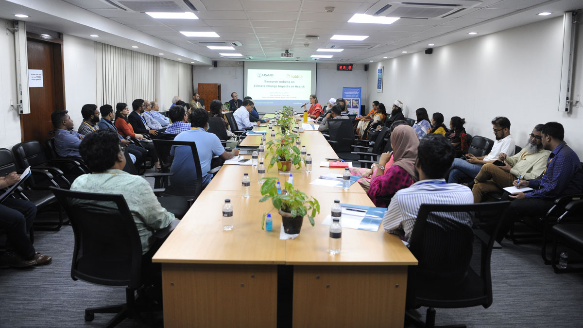 আইসিডিডিআরবির ইমেরিটাস সায়েন্টিস্ট এবং প্রকল্প প্রধান ড. পিটার কিম স্ট্রিটফিল্ড এবং সিনিয়র প্রোগ্রাম ম্যানেজার আতিক আহসান ওয়েবসাইটটির গঠন; কার্যকারিতা; জলবায়ু পরিবর্তন এবং স্বাস্থ্যের ওপর এর প্রভাব সম্পর্কিত রিয়েল-টাইম তথ্য প্রদানের সক্ষমতার বিষয়ে উপস্থাপন করেন। এরপর উন্মুক্ত আলোচনায় জলবায়ু পরিবর্তন এবং স্বাস্থ্য বিশেষজ্ঞ, বিজ্ঞানী, গবেষণাকারী এবং প্রোগ্রাম বাস্তবায়নকারীরগণ এই ওয়েবসাইটের গুরুত্ব এবং এটিকে কীভাবে আরও সমৃদ্ধ করা যায় তা নিয়ে আলোচনা করেন।