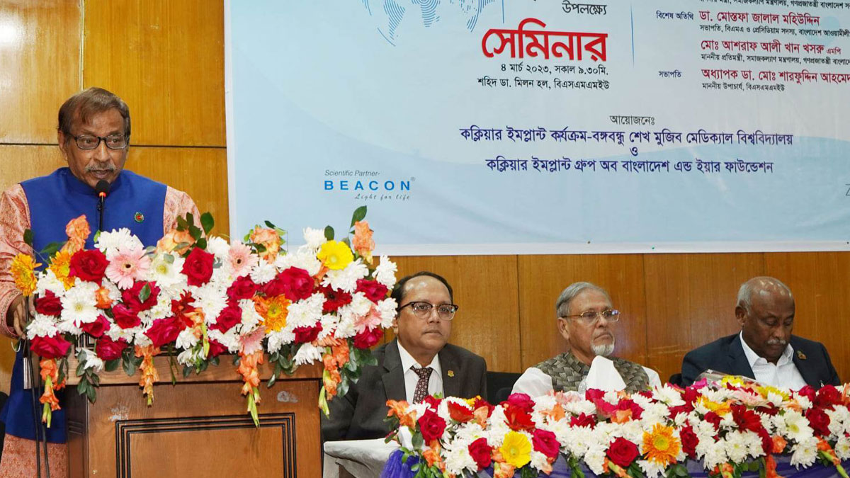 শনিবার (৪ মার্চ) সকালে রাজধানীর বঙ্গবন্ধু শেখ মুজিব মেডিকেল বিশ্ববিদ্যালয়ে (ব্সিএমএমইউ) বিশ্ব শ্রবণ দিবস-২০২৩ উপলক্ষে আয়োজিত সেমিনার ও কক্লিয়ার বরাদ্দপত্র বিতরণ অনুষ্ঠানে প্রধান অতিথি হিসেবে বক্তব্যে তিনি এ কথা বলেন।