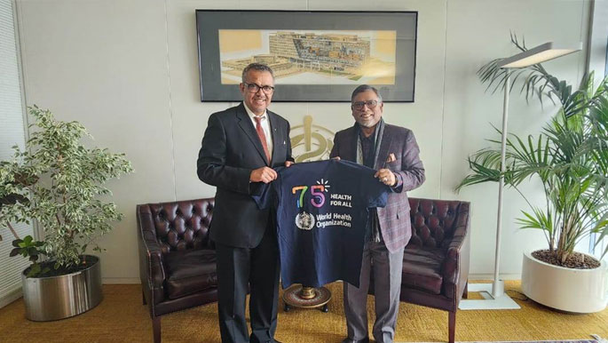 বৃহস্পতিবার (৬ এপ্রিল) সুইজারল্যান্ডের জেনেভায় সংস্থাটির সদর দপ্তরে ডব্লিউএইচওর মহাপরিচালক ড. টেড্রস গেব্রিয়েসাসের সঙ্গে দ্বিপাক্ষিক বৈঠক করেন স্বাস্থ্যমন্ত্রী জাহিদ মালেক। এসময় ড. টেড্রস গেব্রিয়েসাস এ আশ্বাস দেন।
