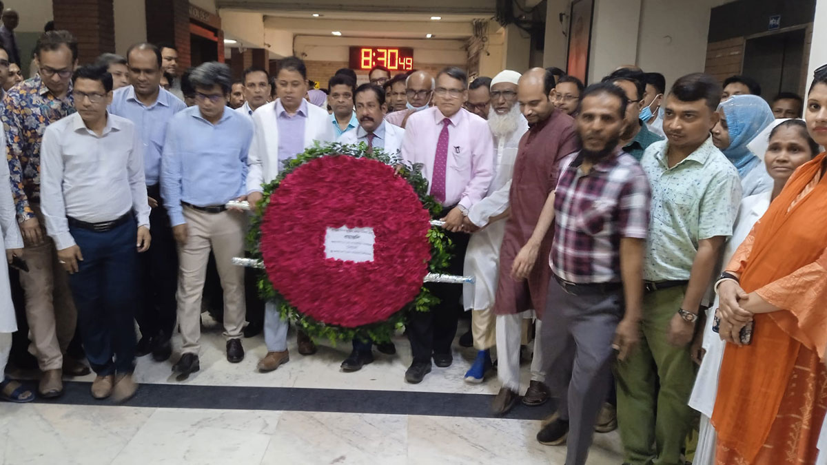 বঙ্গবন্ধুর প্রতিকৃতিতে বিএসএমএমইউয়ের শ্রদ্ধা