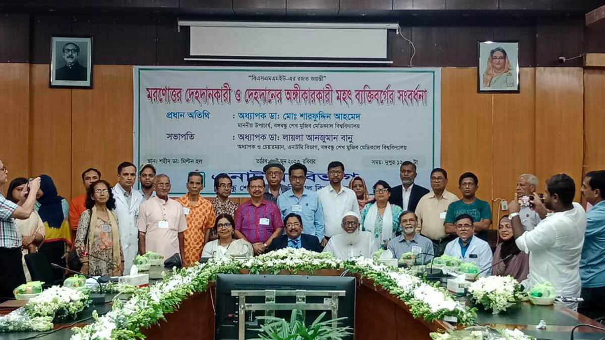 বঙ্গবন্ধু শেখ মুজিব মেডিকেল বিশ্ববিদ্যালয়ে (বিএসএমএমইউ) মরণোত্তর দেহদানকারী ও দেহদানের অঙ্গীকারকারী দেশের অর্ধশত বিশিষ্ট বরেণ্য ব্যক্তিকে সংবর্ধনা দেওয়া হয়েছে।