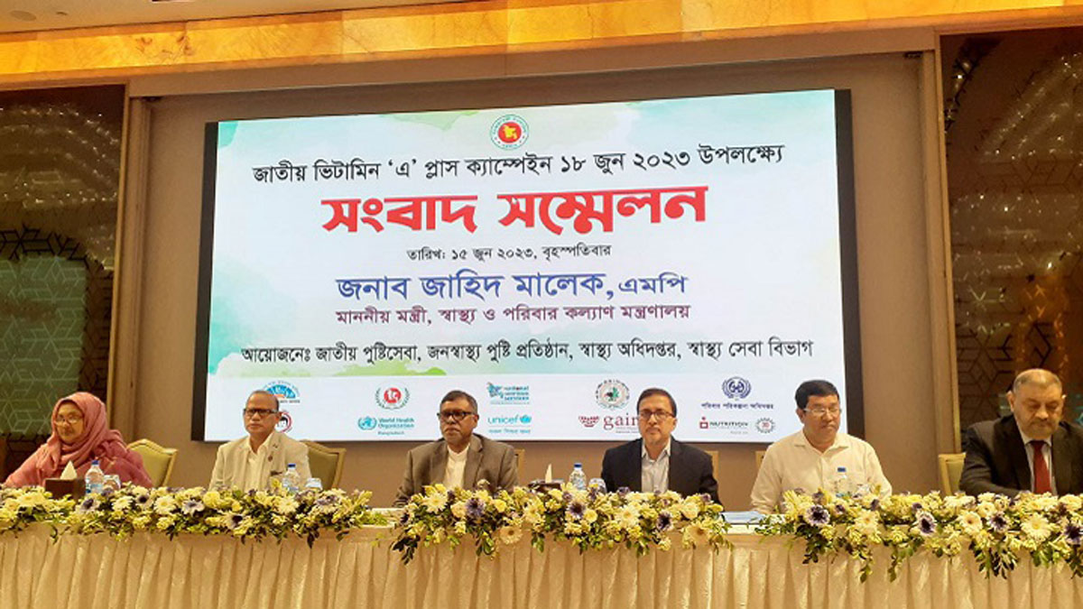 সারাদেশে ১৮ জুন (রোববার) ভিটামিন ‘এ প্লাস’ ক্যাম্পেইন কর্মসূচি পরিচালিত হবে বলে জানিয়েছেন স্বাস্থ্য ও পরিবার কল্যাণমন্ত্রী জাহিদ মালেক। তিনি বলেন, এই কর্মসূচির আওতায় সারাদেশে ২ কোটি ২০ লাখ শিশুকে ভিটামিন ‘এ’ ক্যাপসুল খাওয়ানো হবে। তবে দুর্গম এলাকায় এই ক্যাম্পেইন চলবে টানা চার দিন।