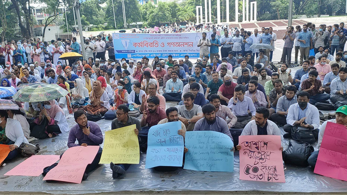 ভাতা বৃদ্ধি ও নিয়মিতকরণের দাবিতে চিকিৎসকদের গণঅনশন