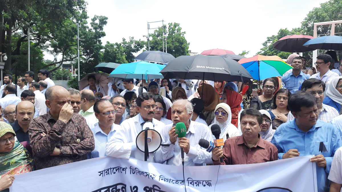 তিনি বলেন, সুশীল সমাজসহ সকল পেশার পেশাজীবীদের প্রতি আমার অনুরোধ, চিকিৎসকদের পাশে আপনারা দাঁড়ান। যারা আপনার আমার স্বাস্থ্য সেবায় নিজেদের উৎসর্গ করে চলেছেন, তাদের বিপদে এগিয়ে আসা আপনাদের দায়িত্ব।