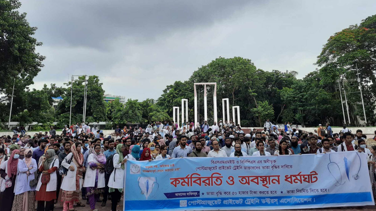পোস্টগ্র্যাজুয়েট প্রাইভেট ট্রেইনি ডক্টরস অ্যাসোসিয়েশনের সভাপতি জাবির হোসেন বলেন, আমরা নিয়মিত হাসপাতালে যে সময় দেই, তার কোনো মূল্যায়ন পাই না। অথচ এই সমাজের সবচেয়ে মেধাবীরাই চিকিৎসা পেশায় আসেন। কিন্তু এই জায়গাটায় এসে যদি এই চিকিৎসকদের নিয়মিত অবহেলা আর অবমূল্যায়নের শিকার হতে হয়, তাহলে ভবিষ্যতে কেউ চিকিৎসা পেশায় আসতে চাইবে না।