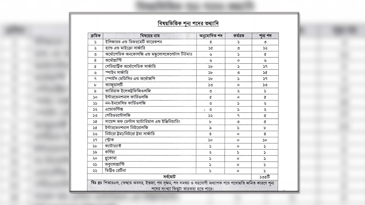 এতে বলা হয়, সহকারী অধ্যাপকের সাব-স্পেশালিটির বিভিন্ন বিষয়ে অনুমোদিত পদ শূন্য থাকায় তা পূরণে ইতোপূর্বে স্বাস্থ্য অধিদপ্তরের মাধ্যমে বিভিন্ন বিষয়ে সহকারী অধ্যাপক পদে পদোন্নতির জন্য আবেদনকৃত চিকিৎসকদের থেকে আগ্রহীদের বিষয় পরিবর্তনের মাধ্যমে পদোন্নতি প্রদানের উদ্যোগ গ্রহণ করা হয়েছে।