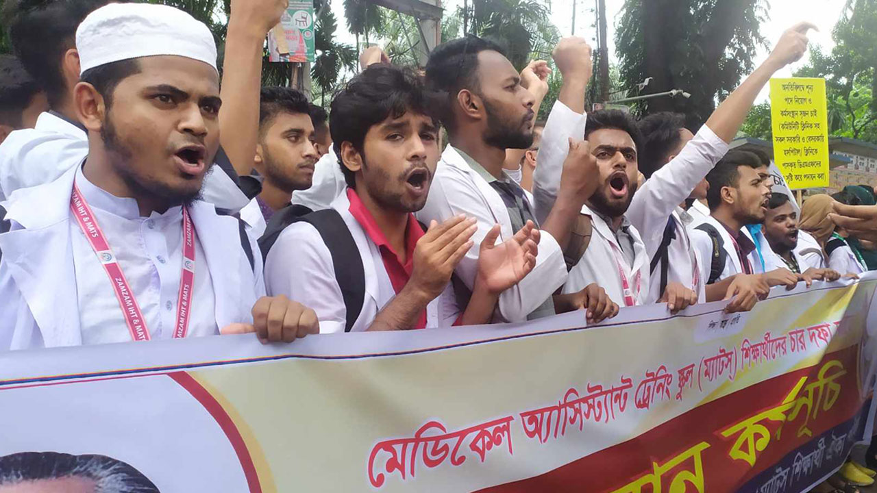 চার দফা দাবি আদায়ে শিক্ষার্থীদের আন্দোলনের মধ্যেই অনির্দিষ্টকালের জন্য সরকারি/বেসরকারি মেডিকেল অ্যাসিস্ট্যান্ট ট্রেনিং স্কুল (ম্যাটস) বন্ধের নির্দেশ দেওয়া হয়েছে।