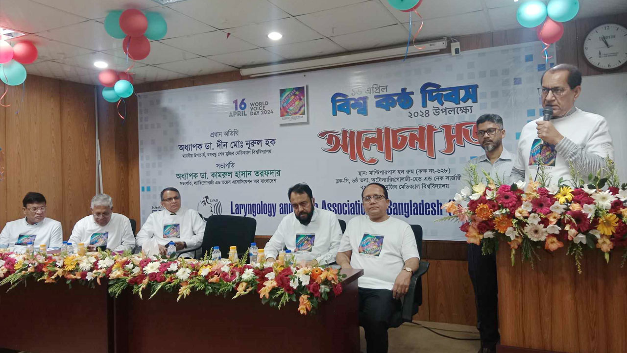 বঙ্গবন্ধু শেখ মুজিব মেডিকেল বিশ্ববিদ্যালয়ে (বিএসএমএমইউ) বিশ্ব কণ্ঠ দিবস উপলক্ষ্যে বৃহস্পতিবার (১৮ এপ্রিল) আয়োজিত এক অনুষ্ঠানে বিশেষজ্ঞরা এ কথা বলেন। বিএসএমএমইউ থেকে পাঠানো এক সংবাদ বিজ্ঞপ্তিতে এসব তথ্য জানানো হয়েছে।