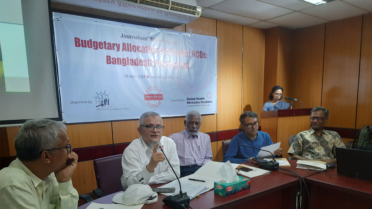 সোমবার (২৯ এপ্রিল) রাজধানীর বিএমএ ভবনে ‘অসংক্রামক রোগ মোকাবিলায় বাজেট বরাদ্দ: বাংলাদেশ প্রেক্ষিত’ শীর্ষক এক সাংবাদিক কর্মশালায় এ দাবি জানানো হয়। গ্লোবাল হেলথ অ্যাডভোকেসি ইনকিউবেটরের (জিএইচএআই) সহযোগিতায় প্রজ্ঞা (প্রগতির জন্য জ্ঞান) এই কর্মশালার আয়োজন করে।