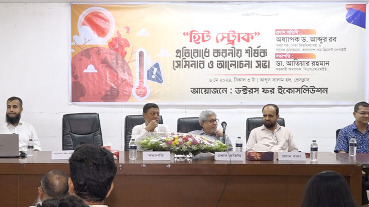 সোমবার (৬ মে) সন্ধ্যায় জাতীয় প্রেস ক্লাবের আব্দুল সালাম হলে ডক্টরস ফর ইকোসলিউশনের আয়োজনে ‘হিট স্ট্রোক প্রতিরোধে করণীয়’ শীর্ষক সেমিনার ও আলোচনা সভায় বক্তারা এসব কথা বলেন।