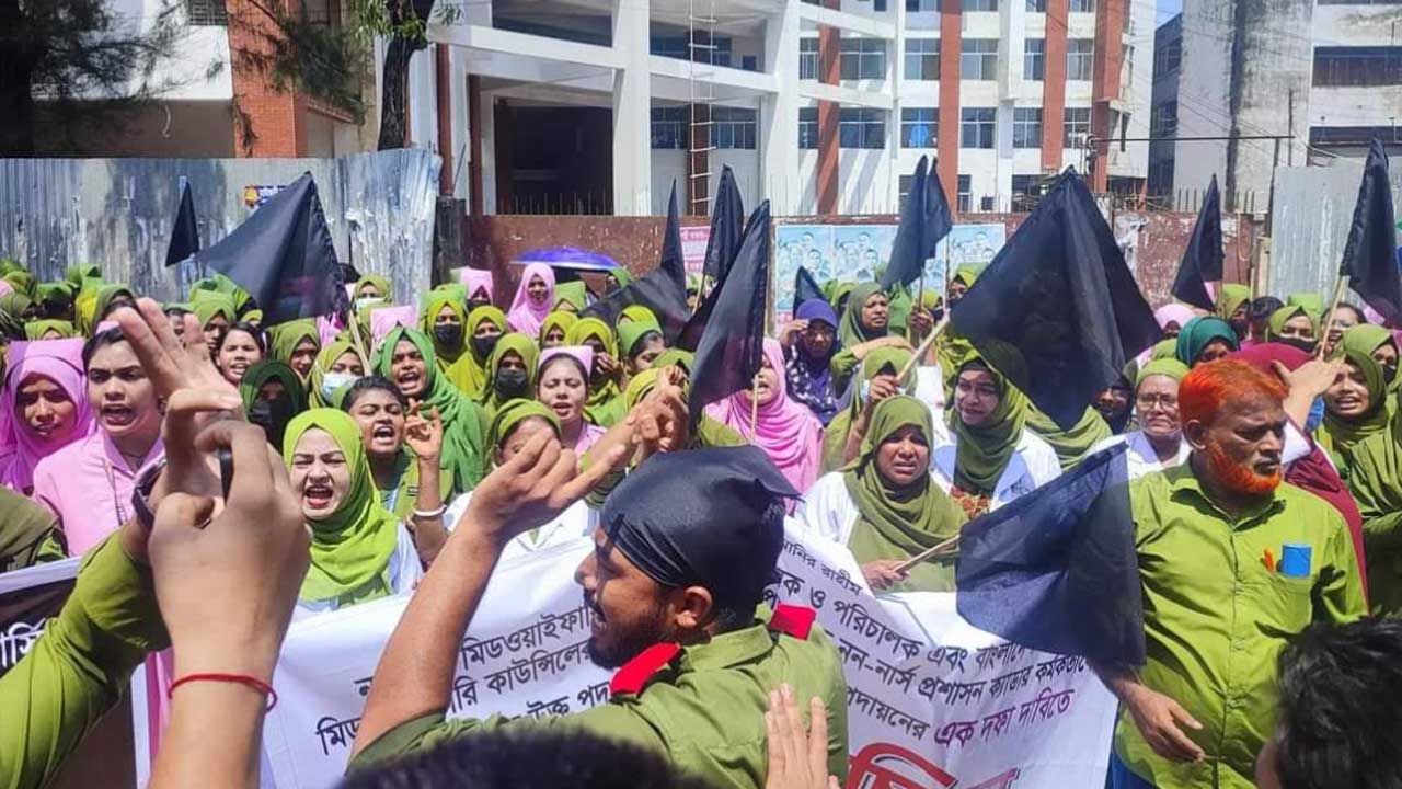 নার্সিং ও মিডওয়াইফারি অধিদপ্তরের মহাপরিচালক, পরিচালক এবং বাংলাদেশ নার্সিং ও মিডওয়াইফারি কাউন্সিলের প্রেসিডেন্ট ও রেজিস্টার পদ থেকে প্রশাসন ক্যাডার কর্মকর্তাদের অপসারণ ও পৃথক নার্সিং ক্যাডার ব্যবস্থা চালু করে প্রশাসনিক পদগুলোতে নার্স নিয়োগের একদফা দাবিতে সারাদেশে অবস্থান ও বিক্ষোভ কর্মসূচি পালন করছেন নার্সরা।
