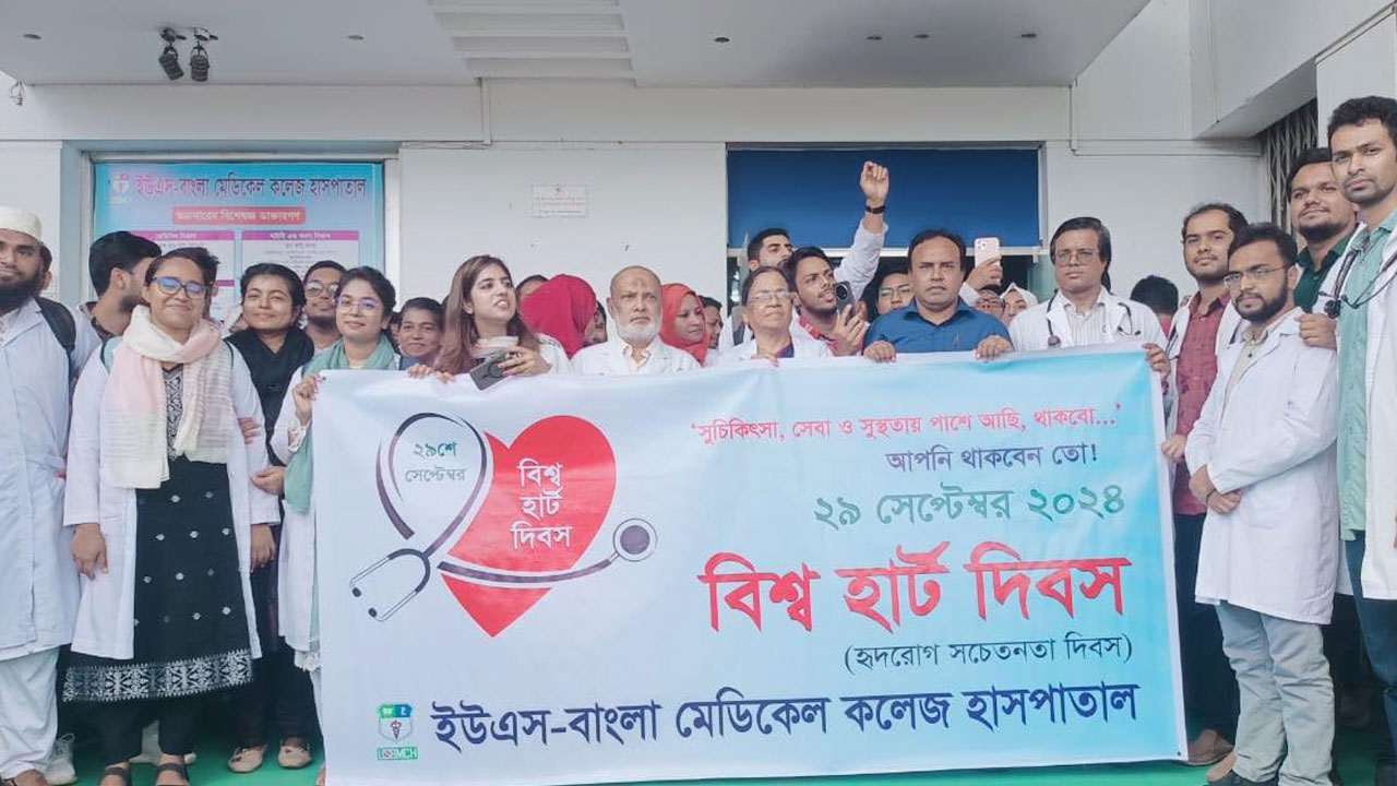 বিশ্ব হার্ট দিবস উপলক্ষ্যে র্যালি ও জনমনে সচেতনতা বিষয়ক আলোচনা সভার আয়োজন করেছে ইউ-এস বাংলা মেডিকেল কলেজ হাসপাতাল।