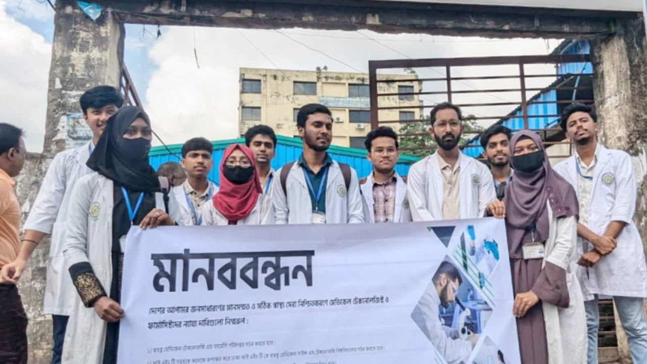 মেডিকেল টেকনোলজিস্ট ও ফার্মাসিস্ট শিক্ষার্থীরা বলেছেন, স্বাস্থ্যসেবা খাতে মেডিকেল টেকনোলজিস্ট ও ফার্মাসিস্টদের ভূমিকা অত্যন্ত গুরুত্বপূর্ণ। তারা স্বাস্থ্য সেবা ব্যবস্থার অগ্রভাগে থেকে নির্ভুল রোগ নির্ণয়, চিকিৎসা সহায়তা ও বিভিন্ন ধরনের ডায়াগনস্টিক সেবা দিয়ে থাকেন। কিন্তু পেশাগতভাবে তারা কয়েক যুগ ধরে অবহেলিত এবং বৈষম্যের শিকার হয়ে আসছেন। যার বিরূপ প্রভাব পড়ছে চিকিৎসা ক্ষেত্রে। গুণগত, মানসম্মত ও সাশ্রয়ী স্বাস্থ্যসেবা বঞ্চিত হচ্ছেন রোগীরা। এমন পরিস্থিতিতে মান উন্নয়নের মাধ্যমে স্বাস্থ্যসেবার মান বৃদ্ধিতে ছয় দফা দাবি জানিয়েছেন তারা।