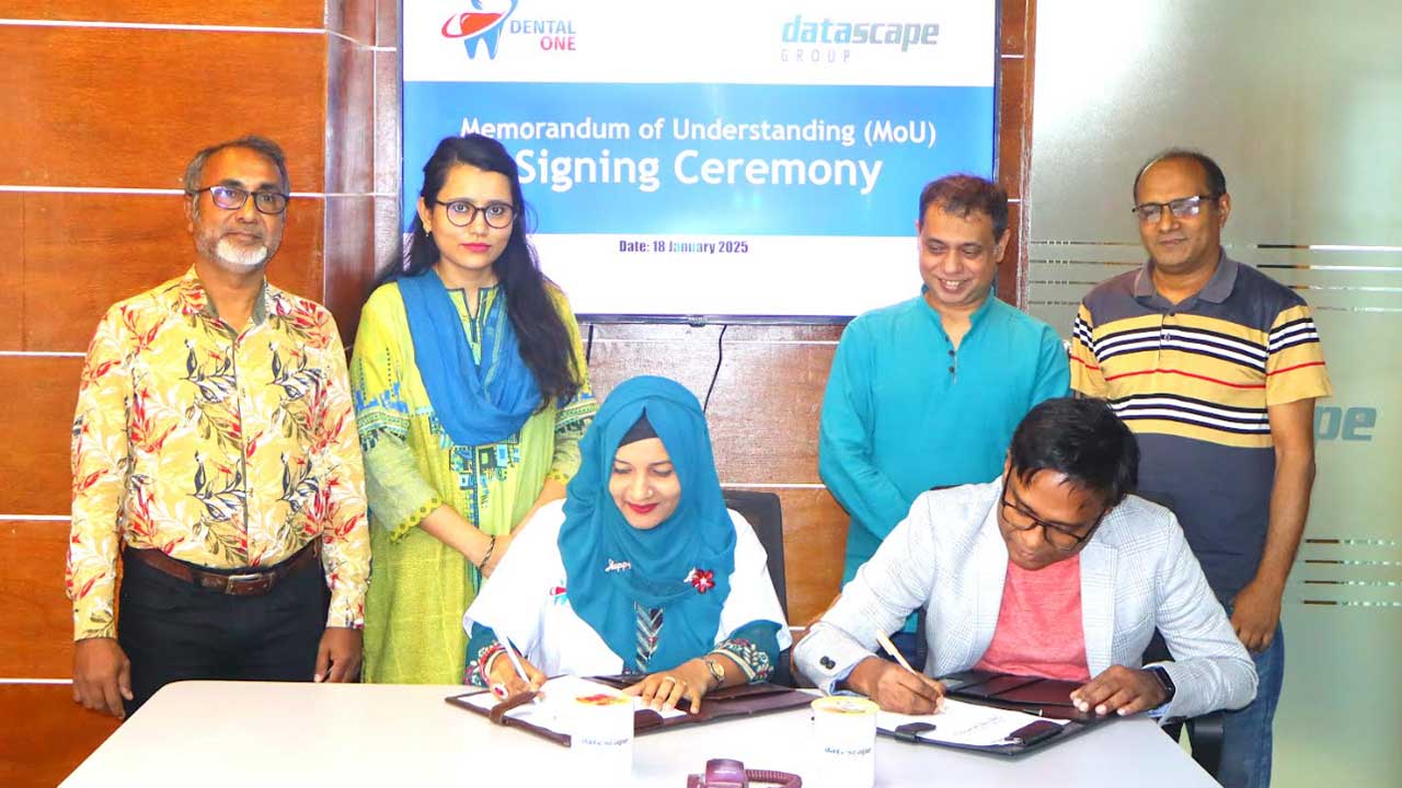 ডেটাস্কেপ গ্রুপের সঙ্গে একটি সমঝোতা স্মারক স্বাক্ষর করেছে ডেন্টাল ওয়ান। এই চুক্তির আওতায় ডেটাস্কেপ গ্রুপের সব কর্মী বিশেষ ছাড়ে ডেন্টাল চিকিৎসা সেবা গ্রহণ করতে পারবেন। ডেন্টাল ওয়ান তার অত্যাধুনিক প্রযুক্তি, পেশাদার চিকিৎসক দল এবং সাশ্রয়ী সেবার জন্য পরিচিত।