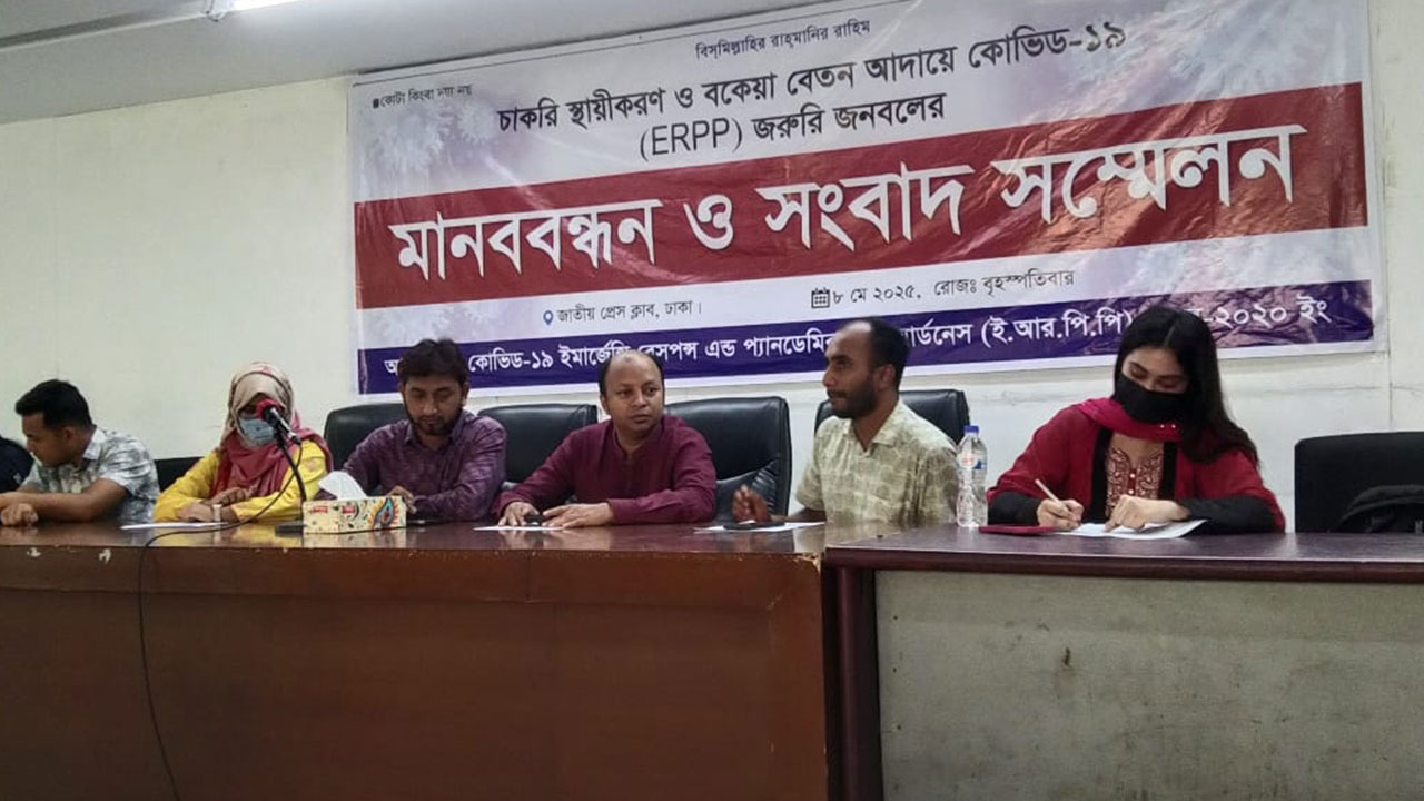 বৃহস্পতিবার (৮ মে) জাতীয় প্রেস ক্লাবে আয়োজিত এক সংবাদ সম্মেলনে ইআরপিপি প্রকল্পে নিয়োগ পাওয়া স্বাস্থ্যকর্মীরা এসব দাবি জানান।