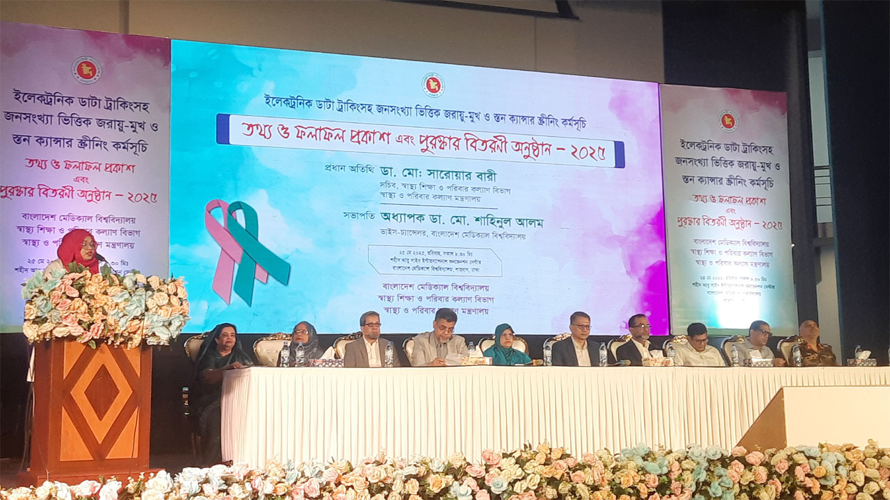 ‘ইলেক্ট্রনিক ডাটা ট্র্যাকিংসহ জনসংখ্যাভিত্তিক জরায়ুমুখ ও স্তন ক্যান্সার স্ক্রিনিং’ শীর্ষক কর্মসূচির ফলাফল প্রকাশ অনুষ্ঠানে প্রধান অতিথির বক্তব্যে সচিব বলেন,“চিকিৎসা ব্যয় দিন দিন বৃদ্ধি পাচ্ছে। তাই আমাদের রোগ প্রতিরোধে মনোযোগ দিতে হবে। যারা ঝুঁকিতে আছেন, তাদের আগাম চিকিৎসা নিতে হবে। স্ক্রিনিং ও প্রাথমিক চিকিৎসার মাধ্যমে চিকিৎসা ব্যয় অনেকটা কমানো সম্ভব।”