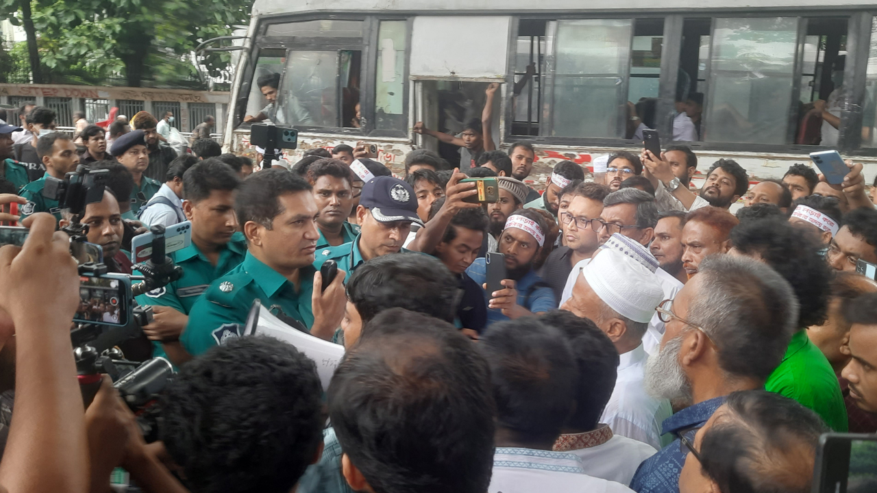 প্রত্যক্ষদর্শীরা জানান, প্রেস ক্লাব থেকে বের হয়ে যমুনা অভিমুখে যাত্রা শুরু করলে পুলিশ ব্যারিকেড দিয়ে আন্দোলনকারীদের মিছিল থামিয়ে দেয়। তখন পুলিশের সঙ্গে আন্দোলনকারীদের বাগবিতণ্ডা ও কথা কাটাকাটি হয়। উত্তেজনা বাড়লে নেতারা পরিস্থিতি শান্ত রাখতে কর্মসূচি সাময়িক সমাপ্তি ঘোষণা করেন এবং স্মারকলিপি পৌঁছে দেওয়ার বিকল্প কর্মপন্থা গ্রহণের সিদ্ধান্ত নেন।