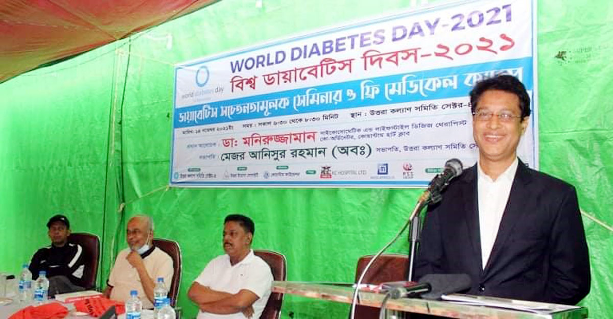 প্রধান আলোচক হিসেবে ডা. মনিরুজ্জামান বলেন, বিশ্ব ডায়াবেটিস দিবস উপলক্ষে আমরা একত্রিত হয়েছিলাম। সচেতন ও সুশৃঙ্খল জীবনযাপনের মাধ্যমে ডায়াবেটিসকে প্রতিরোধ করা সম্ভব।