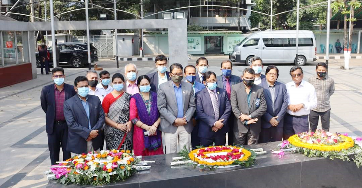 বঙ্গবন্ধুর প্রতিকৃতিতে পুষ্পস্তবক অর্পণের সময় নতুন কমিটির সভাপতি বঙ্গবন্ধু শেখ মুজিব মেডিকেল বিশ্ববিদ্যালয়ের উপাচার্য ও বিশিষ্ট চক্ষু রোগ বিশেষজ্ঞ অধ্যাপক ডা. মো. শারফুদ্দিন আহমেদ, সংস্থাটির কোষাধ্যক্ষ ও বঙ্গবন্ধু শেখ মুজিব মেডিকেল বিশ্ববিদ্যালয়ের কোষাধ্যক্ষ বিশিষ্ট বক্ষব্যাধি বিশেষজ্ঞ অধ্যাপক ডা. মোহাম্মদ আতিকুর রহমান, মহাসচিব ফিজিক্যাল মেডিসিন অ্যান্ড রিহ্যাবিলিটেশন বিভাগের সহযোগী অধ্যাপক ডা. মো. আলী ইমরান, সহ-সভাপতি অধ্যাপক ডা. এ কে এম সালেক, অধ্যাপক ডা. এ কে এম খুরশিদুল আলম, দপ্তর সম্পাদক ডা. মো. নুরুজ্জামান খন্দকার, সদস্য অধ্যাপক ডা. মো. মনিরুজ্জামান খান, অধ্যাপক ডা. মো. সালাউদ্দিন আল আজাদ, অধ্যাপক ডা. সৈয়দ মোজাফফর আহমেদ, অধ্যাপক ডা. কৃষ্ণ প্রিয় দাশ প্রমুখ উপস্থিত ছিলেন।