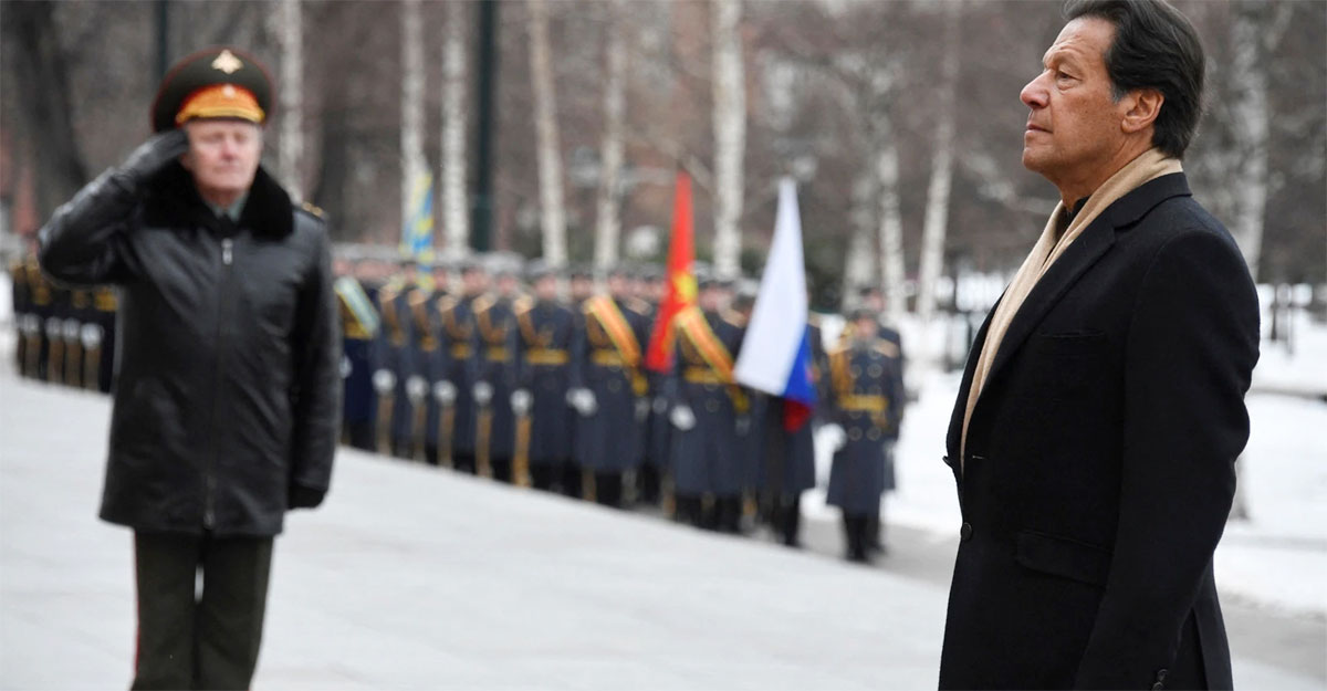 বুধবার বিকেলে পাকিস্তানের রাজধানী ইসলামাবাদ থেকে বিমানে ওঠেন ইমরান খান, বৃহস্পতিবার ভোররাতে তাকে বহনকারী বিমানটি মস্কো বিমানবন্দরে অবতরণ করে। কাকতালীয়ভাবে ওইদিন সকালেই ইউক্রেনে সামরিক অভিযান চালানোর নির্দেশ দেন রাশিয়ার প্রেসিডেন্ট ভ্লাদিমির পুতিন।
