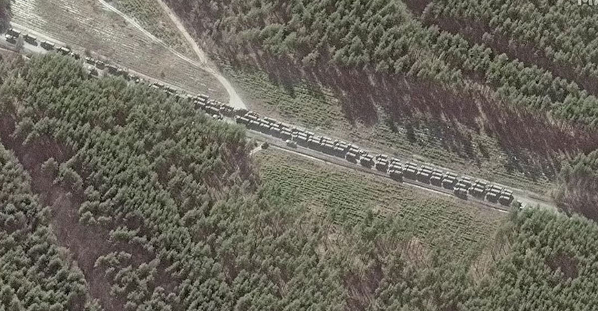 ম্যাক্সার জানায়, মোটামুটি ১৭ মাইল জুড়ে সেনাবহরে অস্ত্র-সজ্জিত যান, ট্যাঙ্ক, গোলাবারুদ ও লজিস্টিক্যাল যান রয়েছে। প্রাইভেট এ মার্কিন কোম্পানিটি বলছে, স্থানীয় সময় বেলা ১১টা ১১মিনিটে বহরটি আন্তোনোভ বিমানঘাঁটির কাছাকাছি টি-১০১০ হাইওয়েতে অবস্থান করছিল।