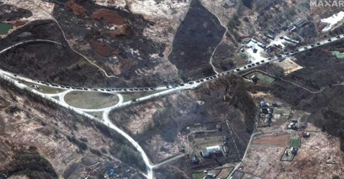 স্যাটেলাইট চিত্র প্রকাশ করে বাংলাদেশ সময় সোমবার শেষ রাতের দিকে বিবিসি জানিয়েছিল ইউক্রেনের রাজধানী কিয়েভ অভিমুখে ১৭ মাইল দীর্ঘ একটি সেনাবহর এগিয়ে যাচ্ছে। তবে সকালে নতুন আরেকটি ছবি প্রকাশ করে সংবাদমাধ্যমটি জানিয়েছে বহরটি অন্তত ৪০ মাইল দীর্ঘ।