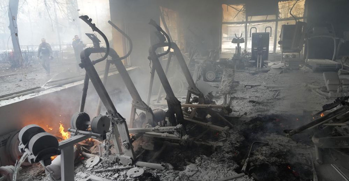 রাশিয়ার হামলায় ক্ষতিগ্রস্ত কিয়েভের একটি জিমনেশিয়াম