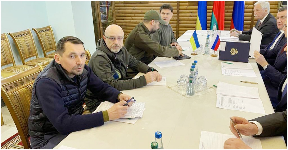 ইউক্রেনের প্রেসিডেন্টের উপদেষ্টা মিখাইলো পোডোলিয়াক এক টুইট বার্তায় বলেছেন, রাশিয়ান প্রতিনিধিদের সাথে বৈঠক শুরু হয়েছে। আজকের আলোচনার মূল বিষয়: