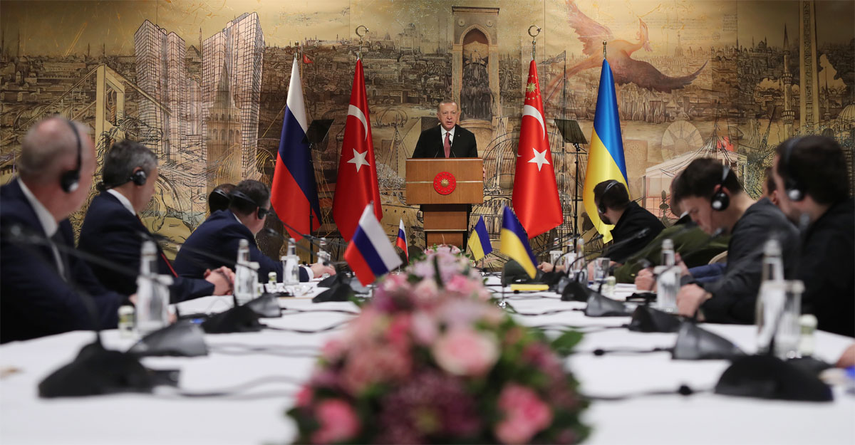 এরদোয়ানের আমন্ত্রণে বেলারুশের গোমেল শহর থেকে তুরস্কের ইস্তাম্বুল শহরে স্থানান্তর করা হয়েছে দুই দেশের প্রতিনিধিদের শান্তি সংলাপ। মঙ্গলবার রাশিয়া ও ইউক্রেনের বৈঠক শুরুর আগে উভয় দেশের প্রতিনিধিদের উদ্দেশে সংক্ষিপ্ত ভাষণ দেন তুরস্কের প্রেসিডেন্ট।