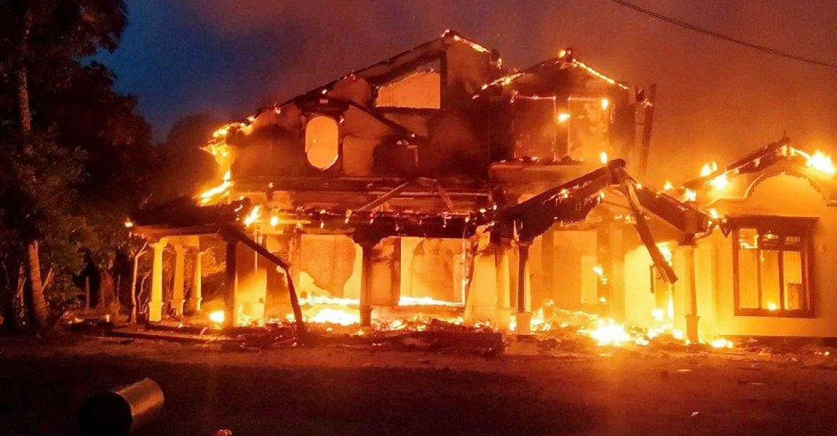 মাহিন্দার বাসভবন জ্বালিয়ে দিলেন বিক্ষোভকারীরা
