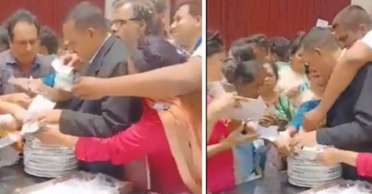 শিক্ষার মানোন্নয়ন নিয়ে বৈঠক ডেকেছিলেন মন্ত্রী। তাতে যোগ দেন শিক্ষকরা। সেখানে সবার জন্য দুপুরের খাবারের ঢালাও আয়োজন ছিল। কিন্তু বৈঠক শেষ না হতেই দেখা গেল সেই খাবারের জায়গায় হুলস্থূল কাণ্ড। ‘ফ্রি লাঞ্চ’র থালা হাতে নিয়ে টানাটানি করছেন শিক্ষকরা। শুধু তাই নয়, দেখা যায় থালা না পাওয়ায় অধৈর্য হয়ে একজন শিক্ষক খাবার বণ্টনের দায়িত্বে থাকা এক ব্যক্তির ঘাড়ের ওপর দিয়ে হুমড়ি খেয়ে পড়ছেন।