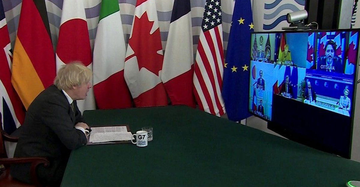 ভিডিও কনফারেন্সের মাধ্যমে জি-৭ সম্মেলনে ভাষণ দিচ্ছেন ব্রিটিশ প্রধানমন্ত্রী বরিস জনসন