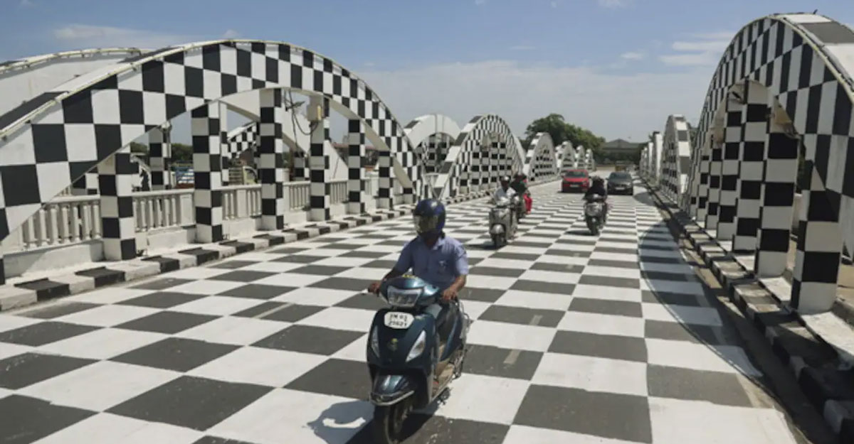সেতুর রঙ দেখলে অবাক হবেন যে কেউ। কারণ সেতুটি সাজানো হয়েছে দাবার বোর্ডের আদলে, যা ইতোমধ্যে সামাজিক যোগাযোগ মাধ্যমে ব্যাপকভাবে ছড়িয়ে পড়েছে। এমন সেতু দেখা গেছে ভারতের চেন্নাইতে।