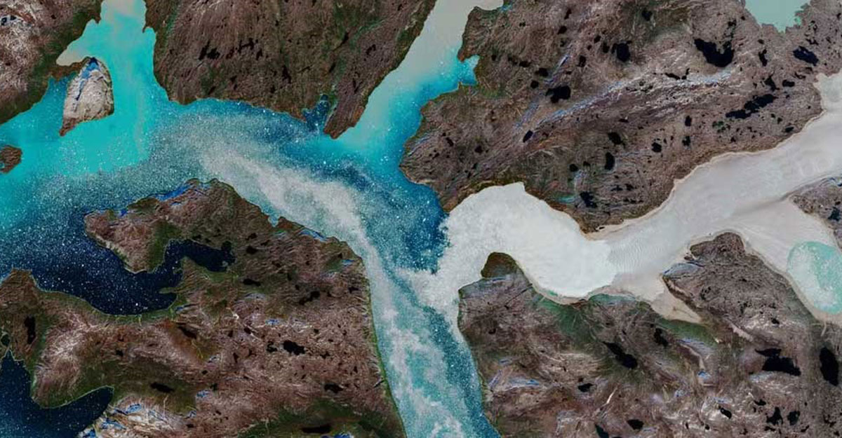নদীর মতো বয়ে চলছে পানির স্রোত। সেই পানির স্রোতের কিছু অংশ সাদা। তার পর তা আস্তে আস্তে হয়ে যাচ্ছে নীল। ছবিটি দেখলে মনে হবে নদীর খাঁড়ি অঞ্চলের কোন প্রাকৃতিক দৃশ্য। কিন্তু আসলে তেমন কিছুই নয় এটি কোপার্নিকাস উপগ্রহের তোলা গ্রিনল্যান্ডের বরফ গলার ছবি।