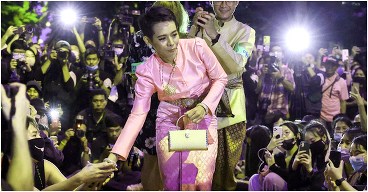 বিবিসি বলেছে, ২০২০ সালে ব্যাংককে এক বিক্ষোভ-প্রতিবাদে গোলাপি রংঙের সিল্কের একটি পোশাক পরেছিলেন। বিক্ষোভস্থলে তিনি লালগালিচার ওপর দিয়ে হেঁটে যান। এ সময় তার মাথার ওপরে একজন ছাতা ধরে ছিলেন।