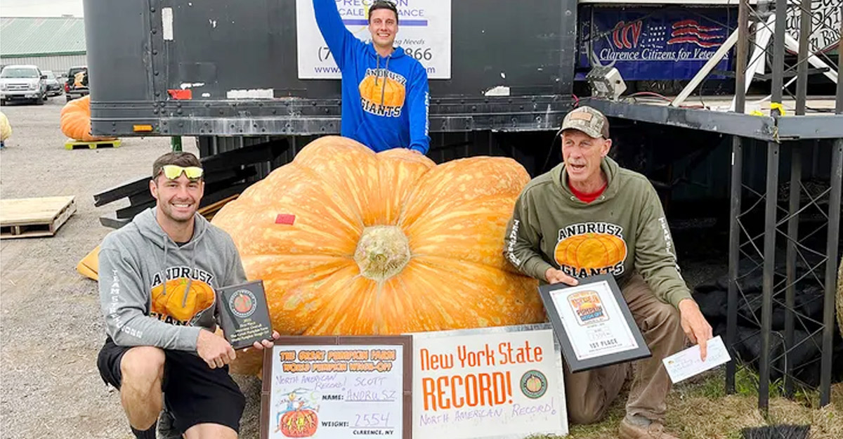 অল্পের জন্য বিশ্ব রেকর্ডের গড়তে পারেননি স্কট অ্যান্ড্রেস। তার এই কুমড়ার ওজন এক হাজার ১৫৮ কেজি। সেখানে ইটালির এক কৃষক এক হাজার ২২৫ কেজি ওজনের কুমড়া ফলিয়ে বিশ্ব রেকর্ড করেছেন।