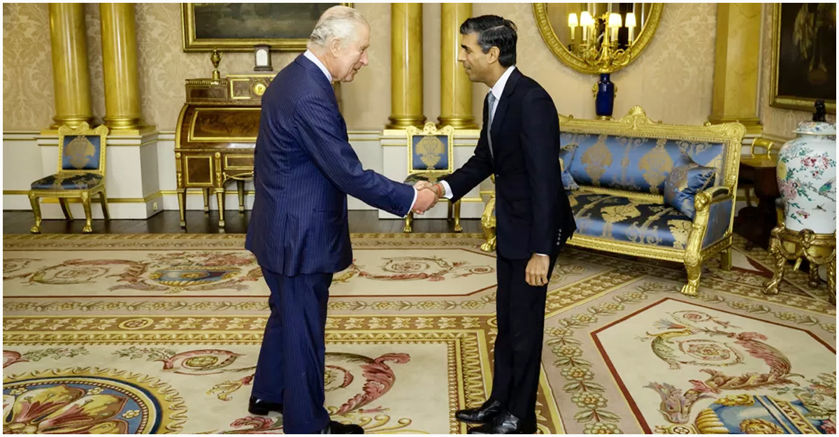 ব্রিটিশ রাজা চার্লস কনজারভেটিভ এই নেতাকে দেশের নতুন প্রধানমন্ত্রী হিসাবে নিয়োগ করেন। প্রধানমন্ত্রী হিসাবে নিয়োগ পাওয়ার পরপরই রাজা তৃতীয় চার্লসের কাছ থেকে সরকার গঠনের প্রস্তাব পান ঋষি। বাকিংহাম প্যালেসের ১৮৪৪ কক্ষে রাজা তৃতীয় চার্লসের সাথে ঋষি সুনাকের বৈঠক হয়।