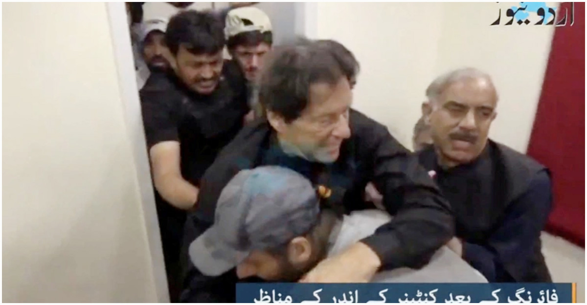 পায়ে গুলিবিদ্ধ ইমরান খানকে লংমার্চের স্থান থেকে হাসপাতালে নেওয়া হয়