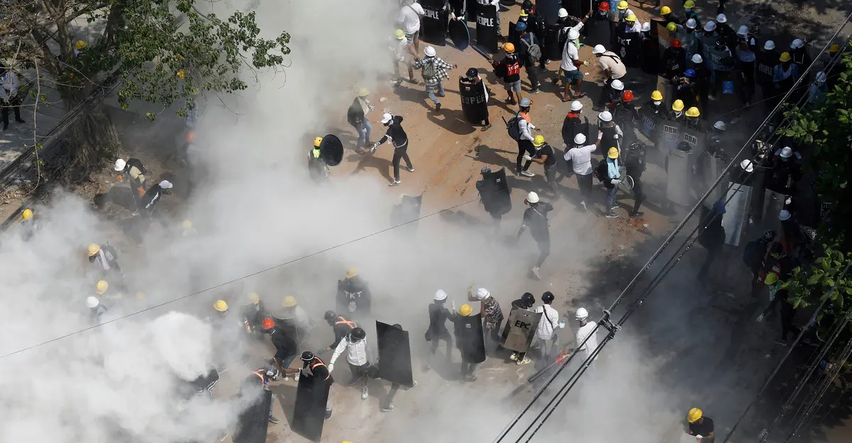 মিয়ানমারের বিক্ষোভে কাঁদানে গ্যাস-স্টান গ্রেনেড