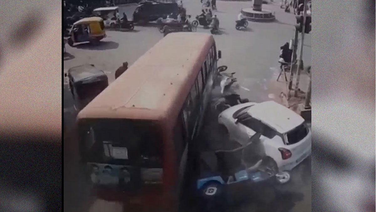 ওই ঘটনার সিসিটিভি ফুটেজে দেখা যাচ্ছে- সিগন্যালে দাঁড়িয়ে আছে একাধিক মোটরসাইকেল এবং রিকশা। হঠাৎ পেছন থেকে একটি বাস সেগুলোকে ধাক্কা দেওয়া শুরু করে। বাসটিও পরে উল্টে যায়।