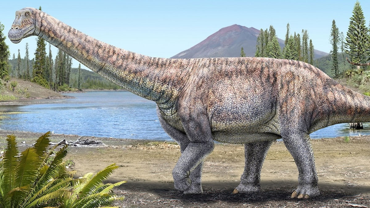 শিল্পীর আঁকা ছবিতে উদ্ভিদ-ভোজী এক ডাইনোসর। বিজ্ঞানীরা এই প্রাণীর অবশিষ্টাংশ চিলির আতাকামা মরুভূমিতে আবিষ্কার করেছেন। ছবি: রয়টার্স