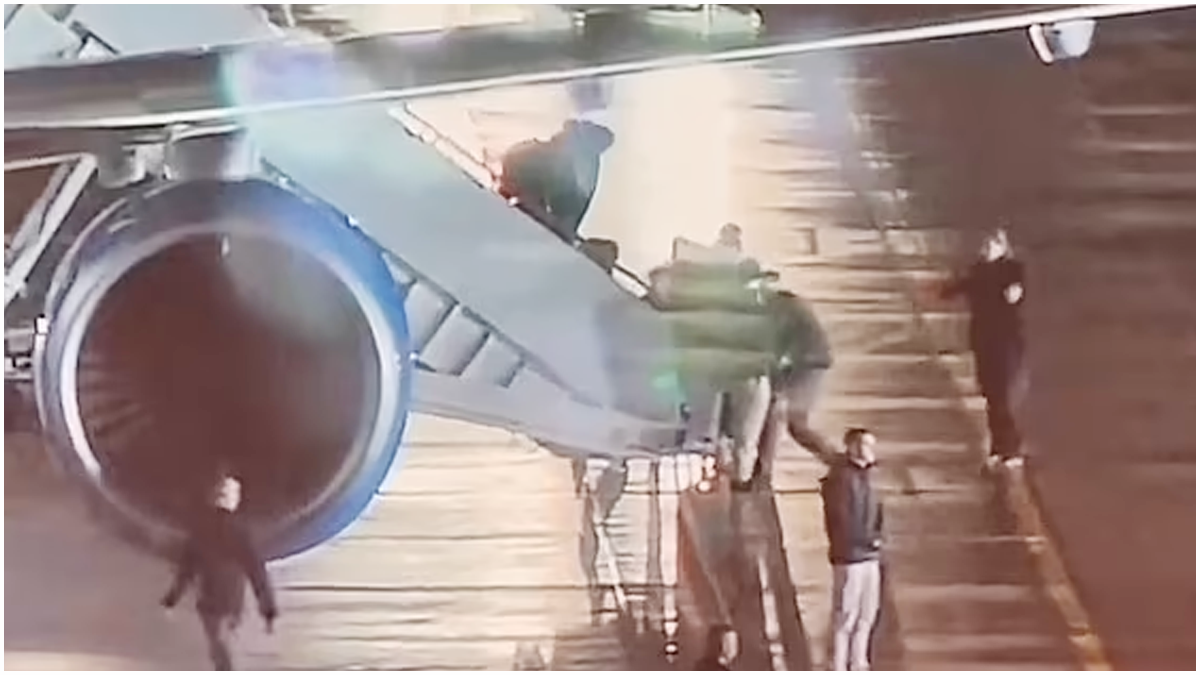 ভিডিওতে দেখা যায়, ওই যাত্রী বিমানের টারমাকে অবতরণ করছেন এবং দ্রুত বিমান থেকে নামতে থাকা সামনের যাত্রীদের দিকে ঝুঁকে পড়েন তিনি। এ সময় তার পিঠে ভারি ব্যাগও দেখা যায়।