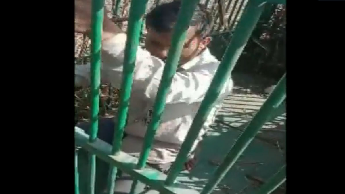 বাঘ ধরার খাঁচায় আটকে গেলেন মানুষ (ভিডিও)