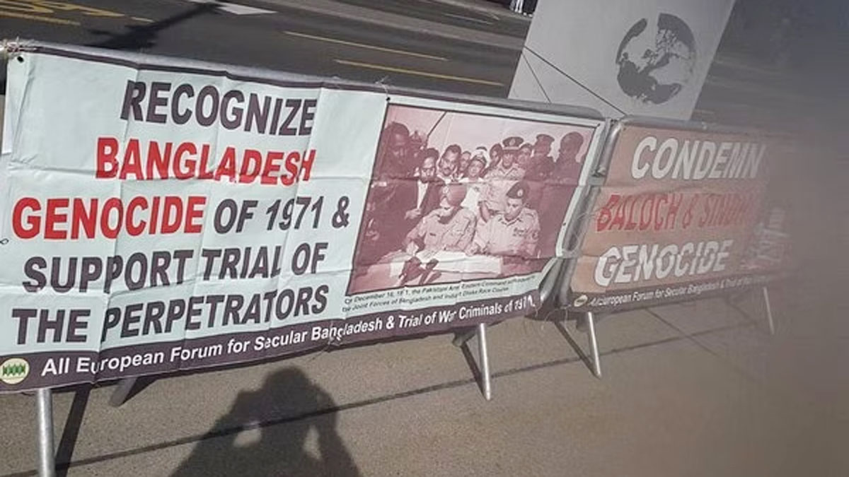১৯৭১ সালে বাংলাদেশে পাক হানাদার বাহিনীর চালানো হত্যাযজ্ঞকে ‘গণহত্যা’ স্বীকৃতি এবং ’৭১ সালের ভূমিকার জন্য পাকিস্তানের বিচার চেয়ে পোস্টার প্রতিবাদ করেছে ইন্টারন্যাশনাল ফোরাম ফর সেকুলার বাংলাদেশের সুইজারল্যান্ড শাখা।